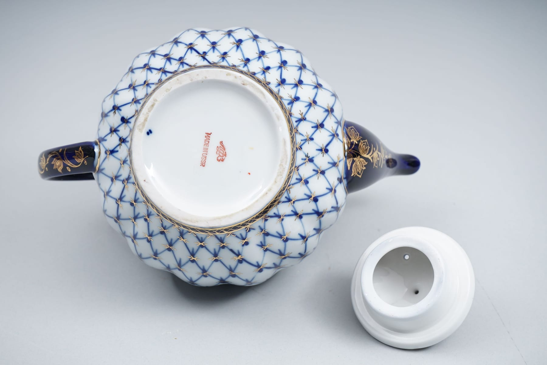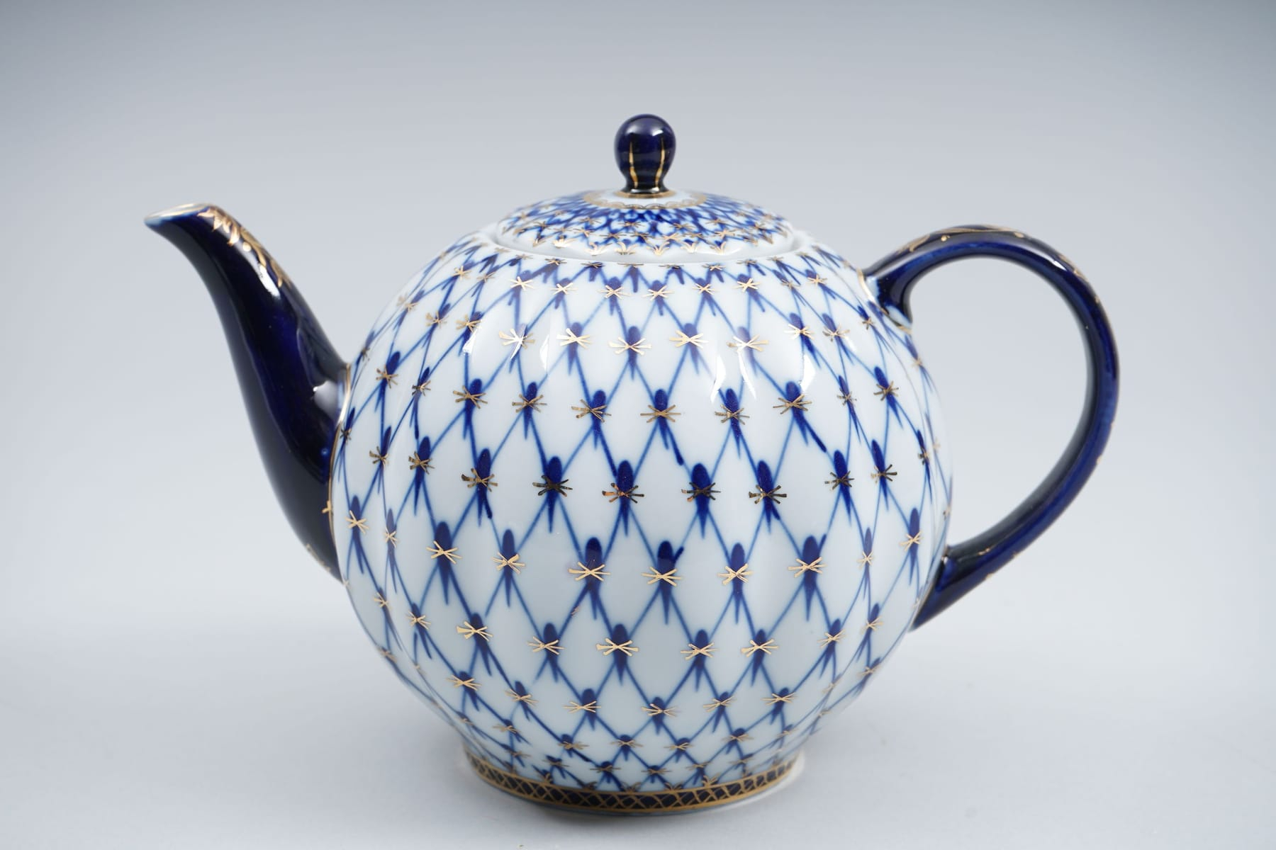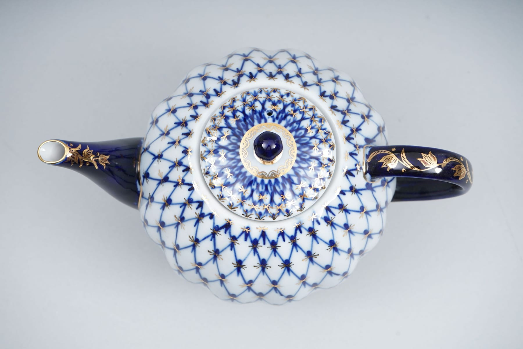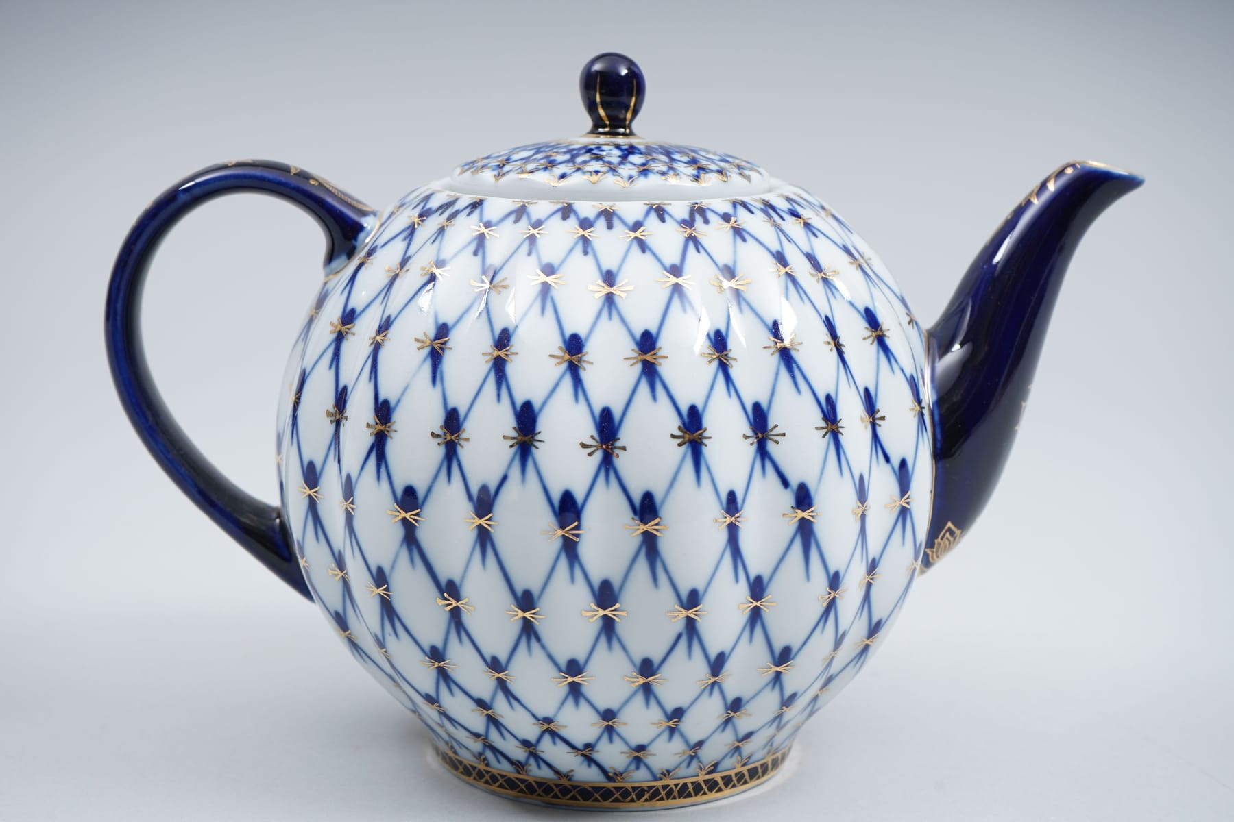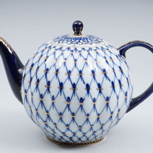 Большой Чайник (доливочный ) на 2 литра знаменитого на весь мир рисунка , созданного в послеблокадном Ленинграде в 1944 году художницей Анной Яцкевич "Кобальтовая сетка" , Ломоносовского завода с клеймом MADE IN USSR (делалось на экспорт ) cередина 1900-х , с ручным декором и позолотой , в хорошем состоянии, без сколов и реставраций, позолота не стерта .