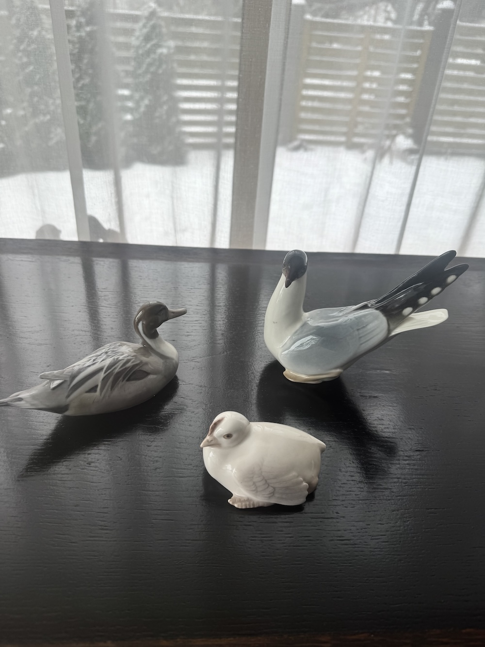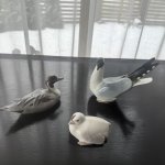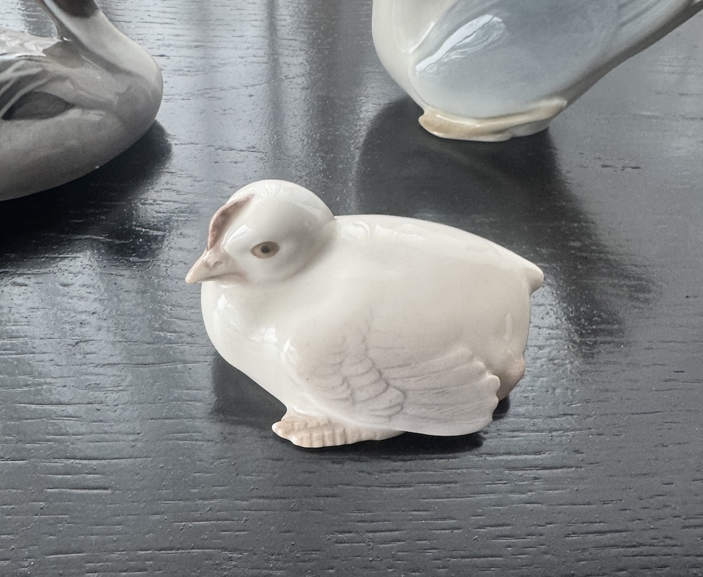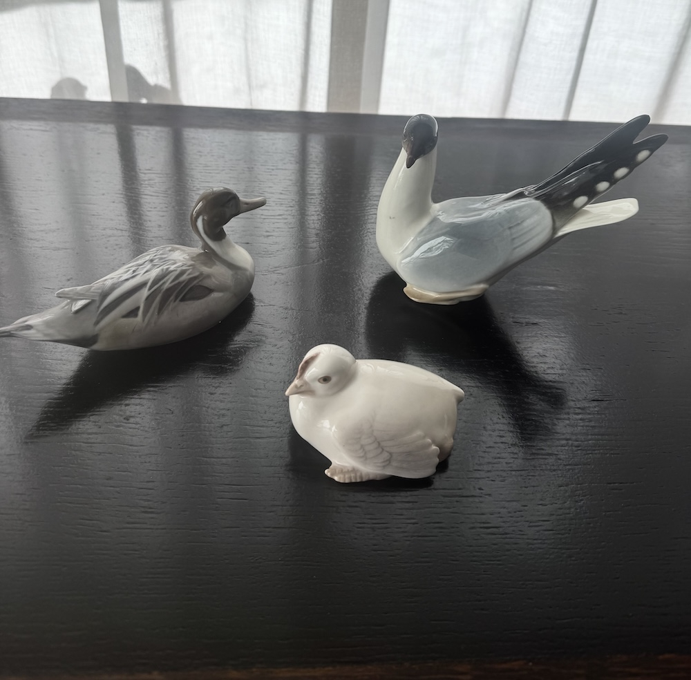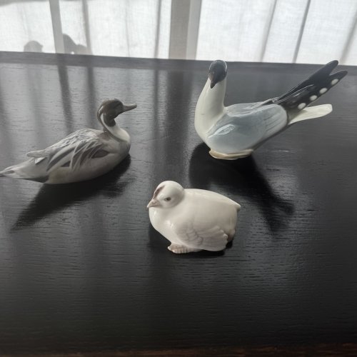 Коллекция фарфоровых фигурок птиц , состоящея из Чайки ЛФЗ (Ломоносовский фарфоровый завод) , птенца индюшки и плывущего селезня Royal Copenhagen Дания. Высота 15- 5 см, без сколов трещин и реставрации. Цена указана за одну фигурку.