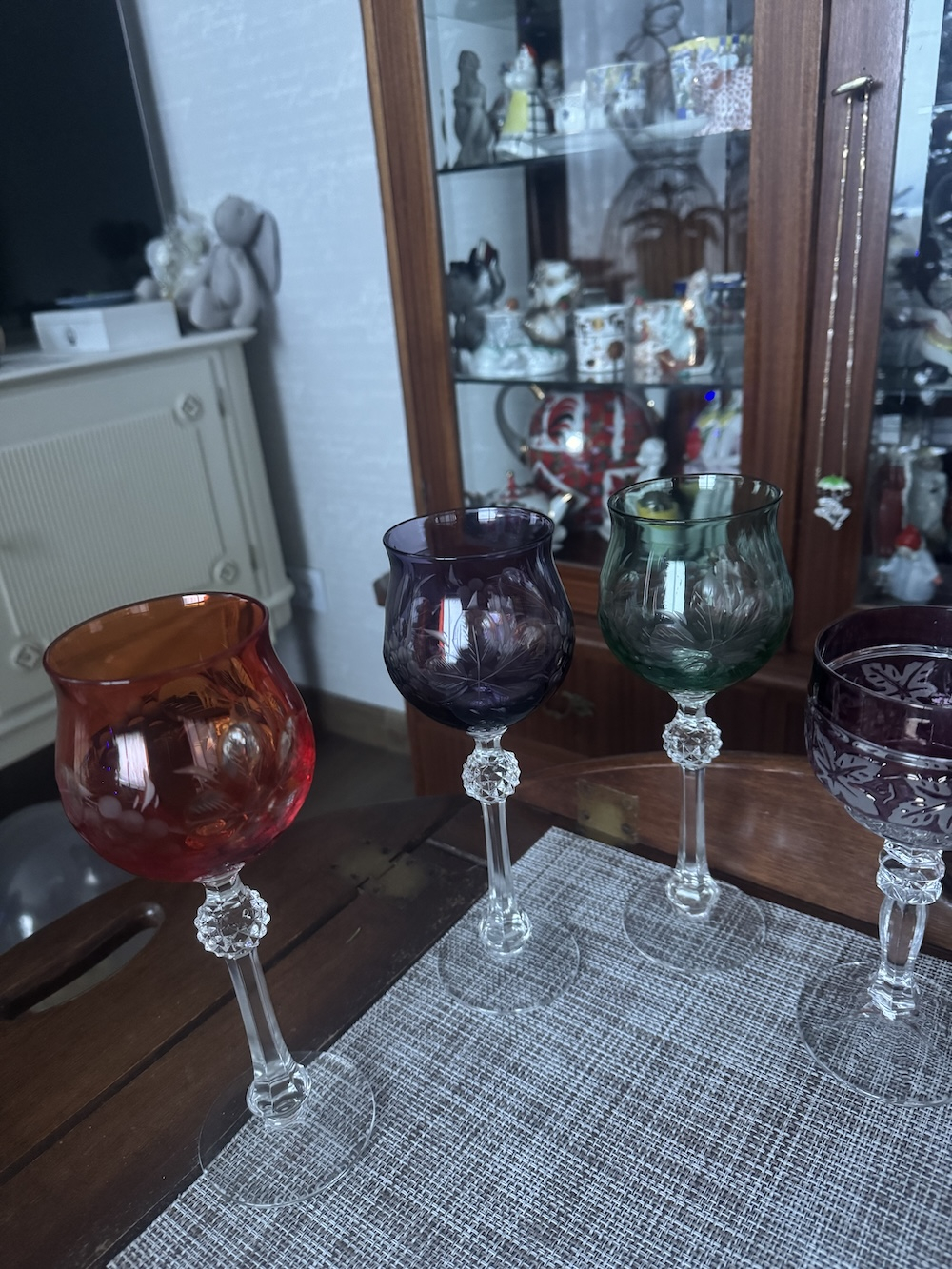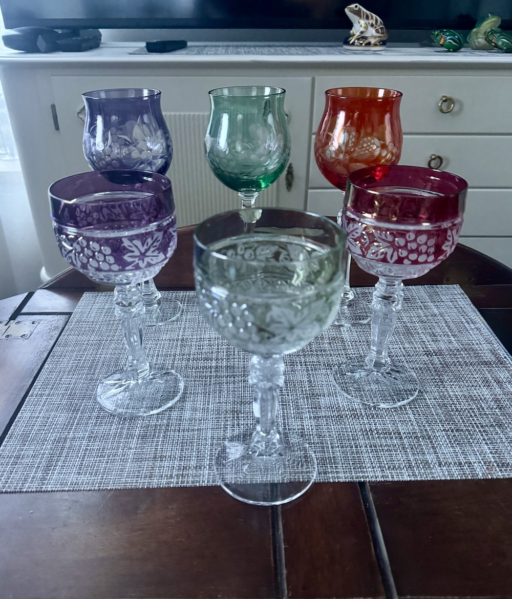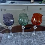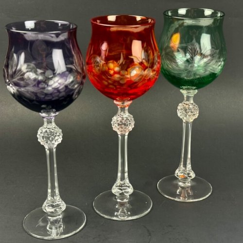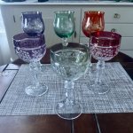 6 krāsainu kristāla glāžu komplekts vīnam un šampanietim, vintage.