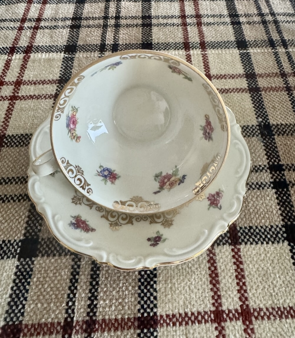 Eleganta tējas servīze no slavenā Bavārijas ražotāja Mitterteich. Dekorēta ar romantisku ziedu rakstu, kurā attēlotas rozes rozā un zaļos toņos un smalkas zelta lapiņas gar malu. Apakšā marķējums: "Mitterteich Bavaria 86". Marķējums no 1931. līdz 1945. gadam. Lieliskā stāvoklī, bez šķembām vai plaisām. Piemērota pasniegšanai, dāvināšanai un kolekcionēšanai. Pieejami seši pāri.Cena ir par 1 pāri