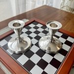 Пара подсвечников, серебро, производитель K&EC (Knut Eriksson & Co), Швеция, 830 проба, клейма серебра на каждом, 1969 год, высота 9 см, вес брутто 308 грамм.