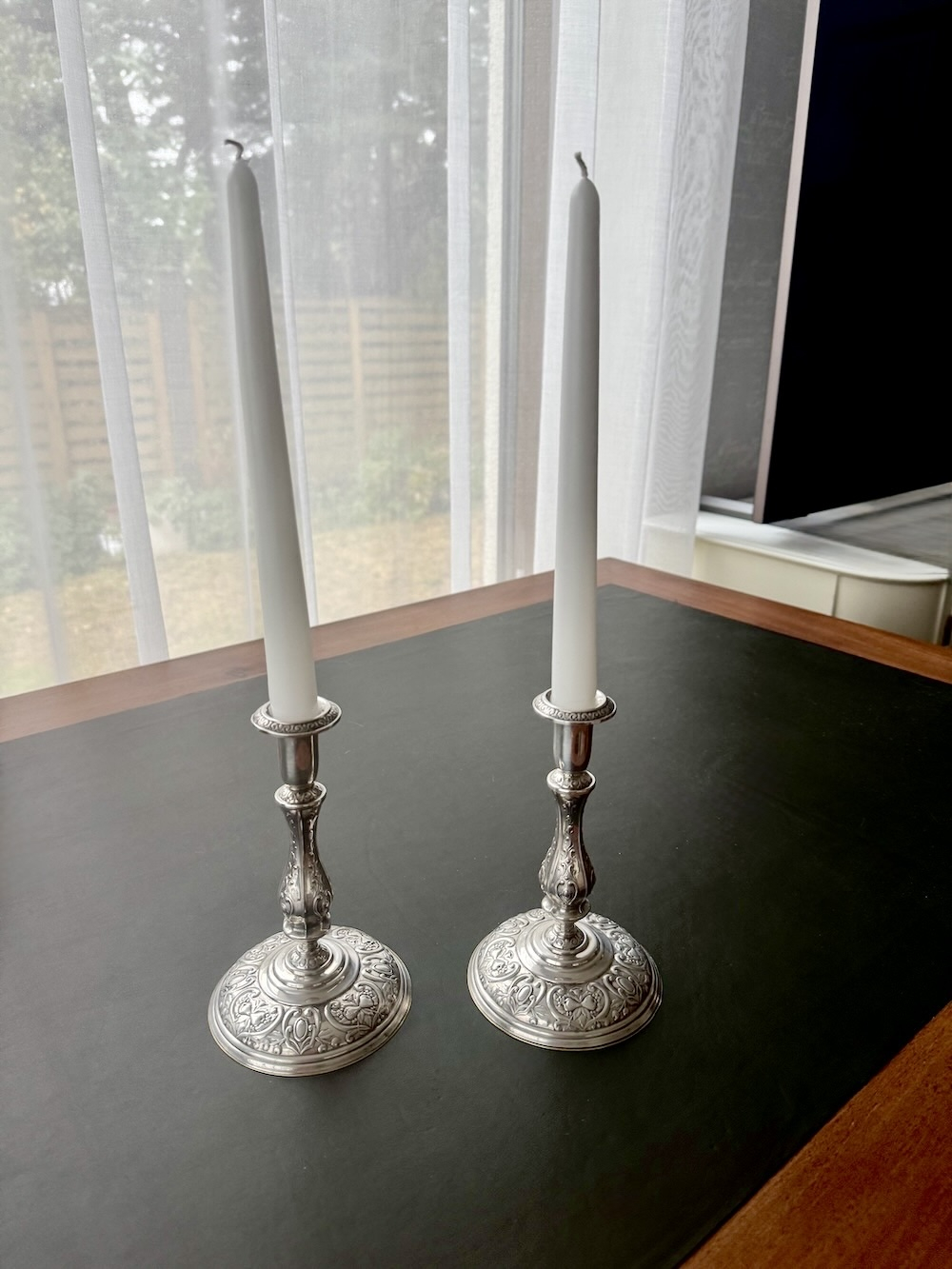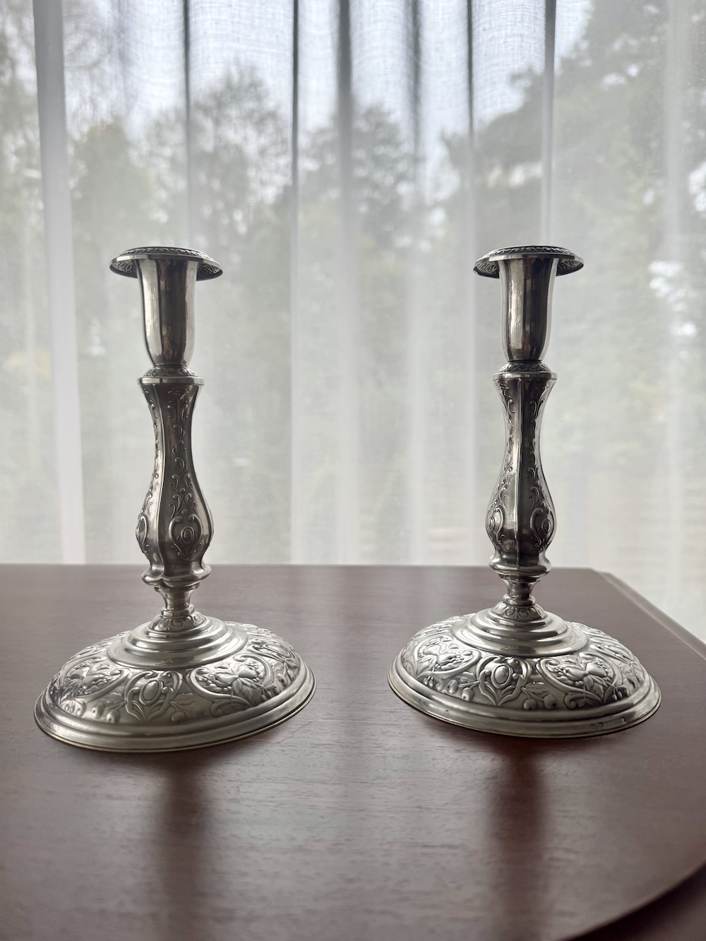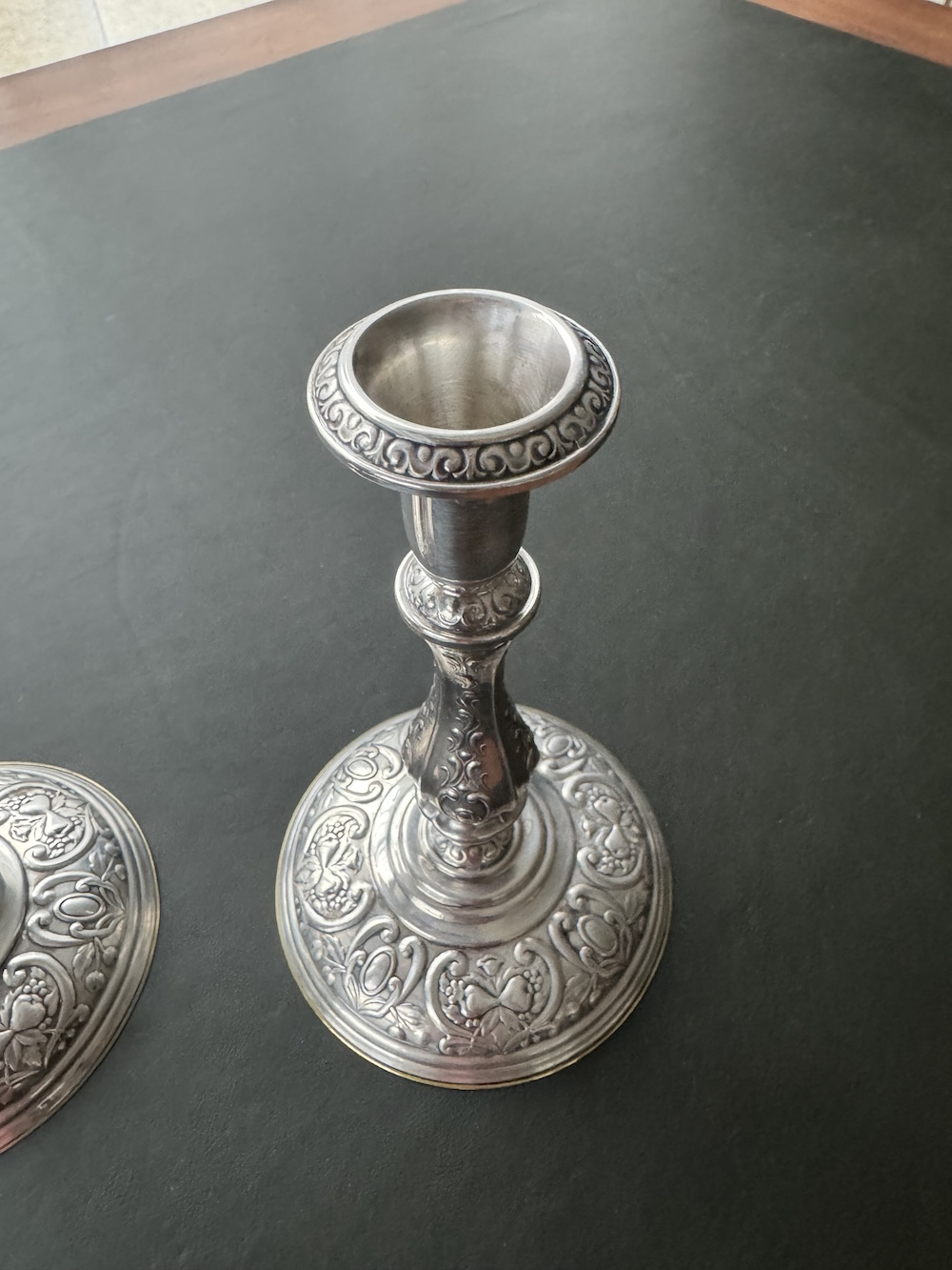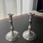 Пара серебряных подсвечника 830 пробы с рельефным изящным декором, финские клейма серебра 1972 года, высота 17,5 см. Общий вес брутто 394 грамм. Украсит праздничный стол, прекрасный подарок .