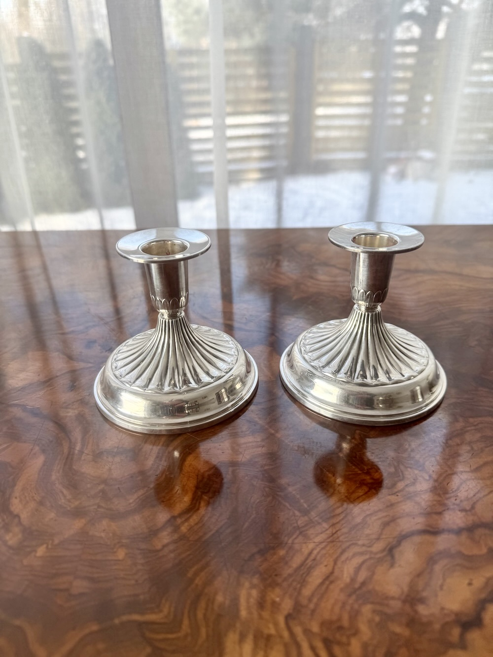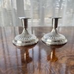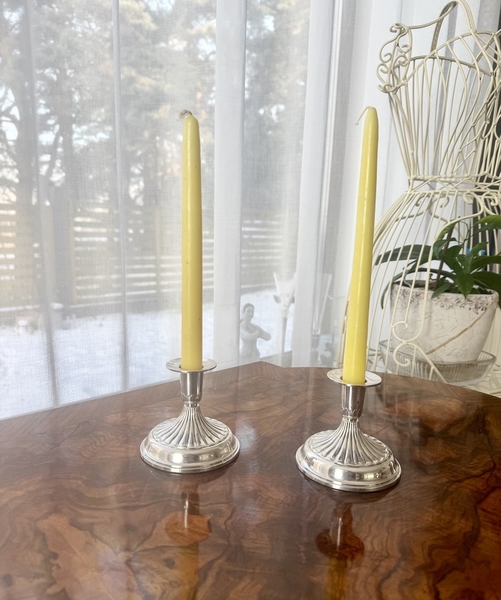 Пара серебряных подсвечника 830 пробы с рельефным изящным декором, четкие шведские клейма серебра 1945 года, высота 8 см. Общий вес брутто 386 грамм. Украсит праздничный стол, прекрасный подарок .