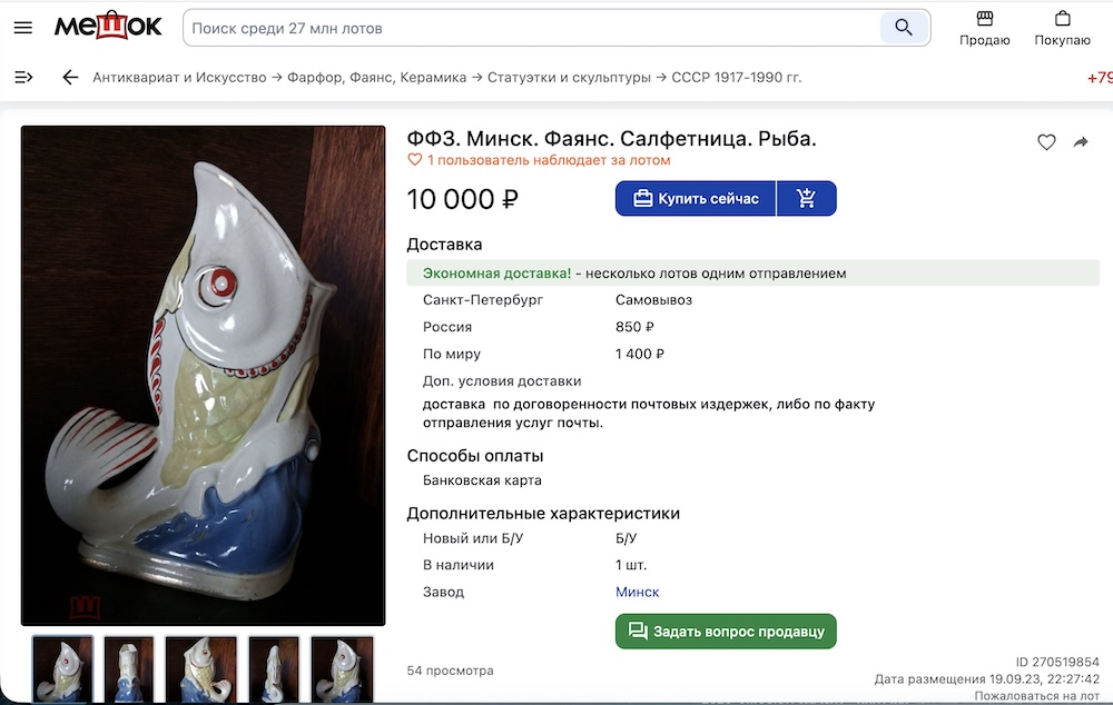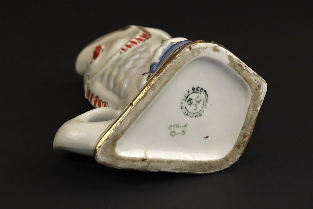 Подставка для салфеток в виде фигурки «Рыба», фарфор, Минский фарфорово-фаянсовый завод, И. Пелинский, М. Сафонова, СССР, клеймо 1957-1965 гг. , высота 16 см