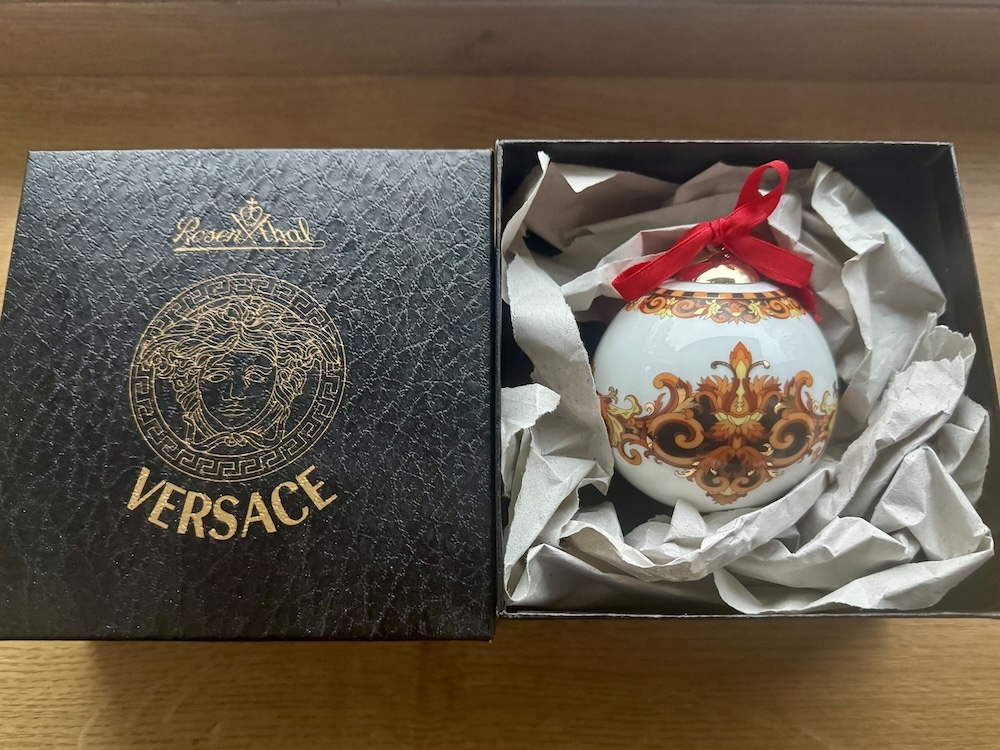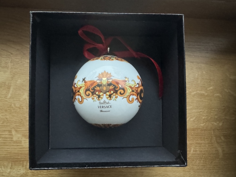 Рождественская редкая фарфоровая елочная игрушка Rosenthal Versace "Barocco "в идеальном состоянии, в коробке. В сотрудничестве с Versace компания Rosenthal разработала уникальные елочные игрушки, которые несомненно украсят любую елочку и станут прекрасным подарком. Диаметр 7, 5 см, высота 9 см.