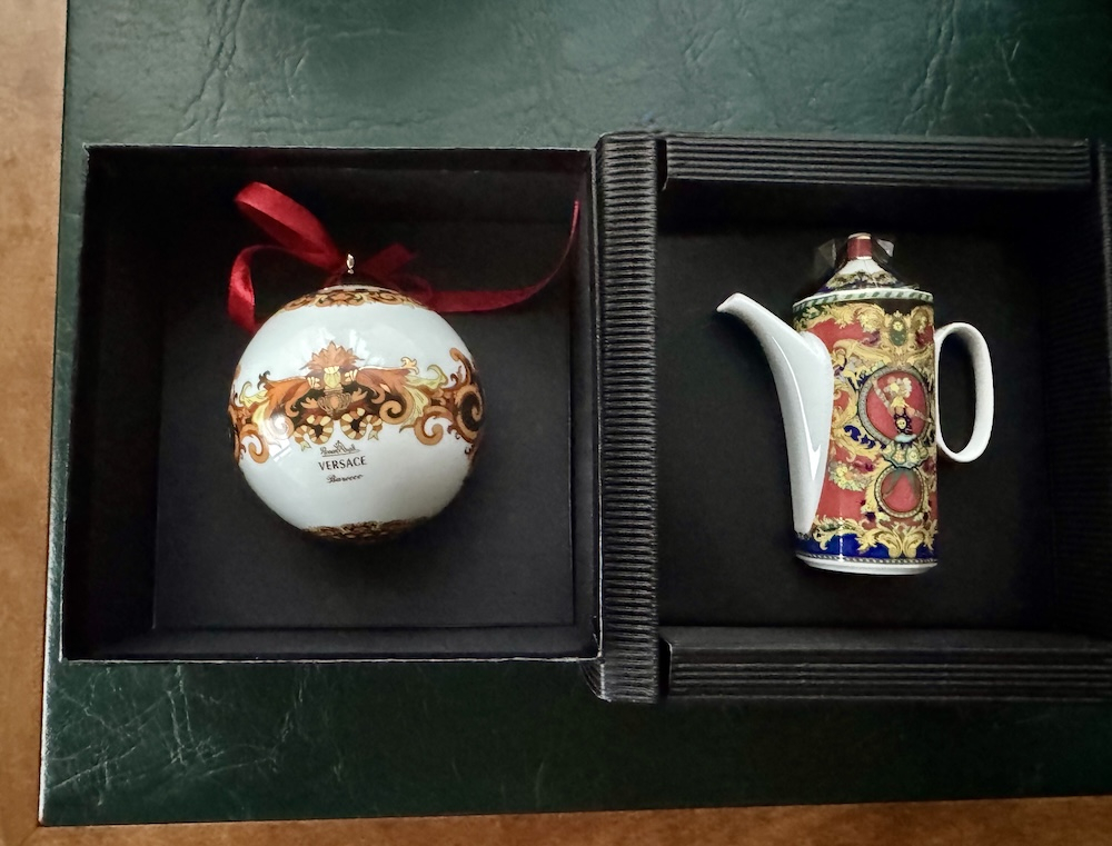 Также в продаже коллекционный фарфоровый мини кофейник Rosenthal Versace " Le Roi Soleil " . Мини кофейники были созданы для коллекционеров, желающих наслаждаться великолепием всех коллекций Versace Rosenthal, так как каждая коллекция выпускалась очень лимитировано и в короткие промежутки времени.