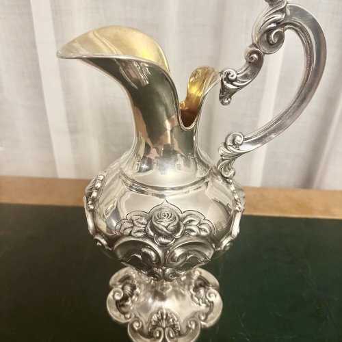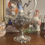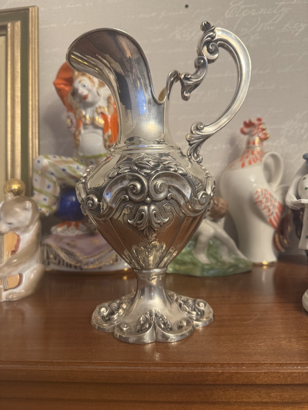 Грандиозный высокий и тяжелый серебряный кувшин для воды с позолотой внутри 830 пробы высотой 30 см, вес 654 грамма, Восхитительно декорирован ,стиль Ренессанс, ввозное клеймо Швеции, клеймо серебра и 830 пробы, первая половина XX века. Прекрасное состояние. Несомненно украсит любой праздничный стол, находка для коллекционеров и великолепный подарок.