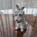 Редкая фигурка «Собачка в платочке», фарфор, Рига (Латвия), СССР, Таисия Полуикявича, (1937–2002), авторская работа 70-80-е годы XX века, 17,4 см. Хорошее состояние