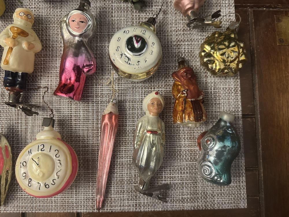 Коллекционные советские елочные игрушки, включая очень редких Айболита, космонавта, часы, мужичок с ноготок, Маленький Мук и другие. Цены начиная с 10 евро по запросу.