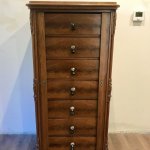 Великолепный антикварный комод из корня ореха и красного дерева, так называемый "Tallboy", вторая половина 19 века. Неповторимый рисунок древесины корня ореха и красного дерева, резьба, боковины с декором в виде рифленых пилястр, запирающий все ящики старинный центральный замок, ручная работа добросовестных мастеров прошлого века, накладные ручки , cемь вместительных выдвижных ящиков и удачные размеры, все это делает комод прекрасным приобретением. Длина 75 см, ширина 56 см, высота 152 см.
