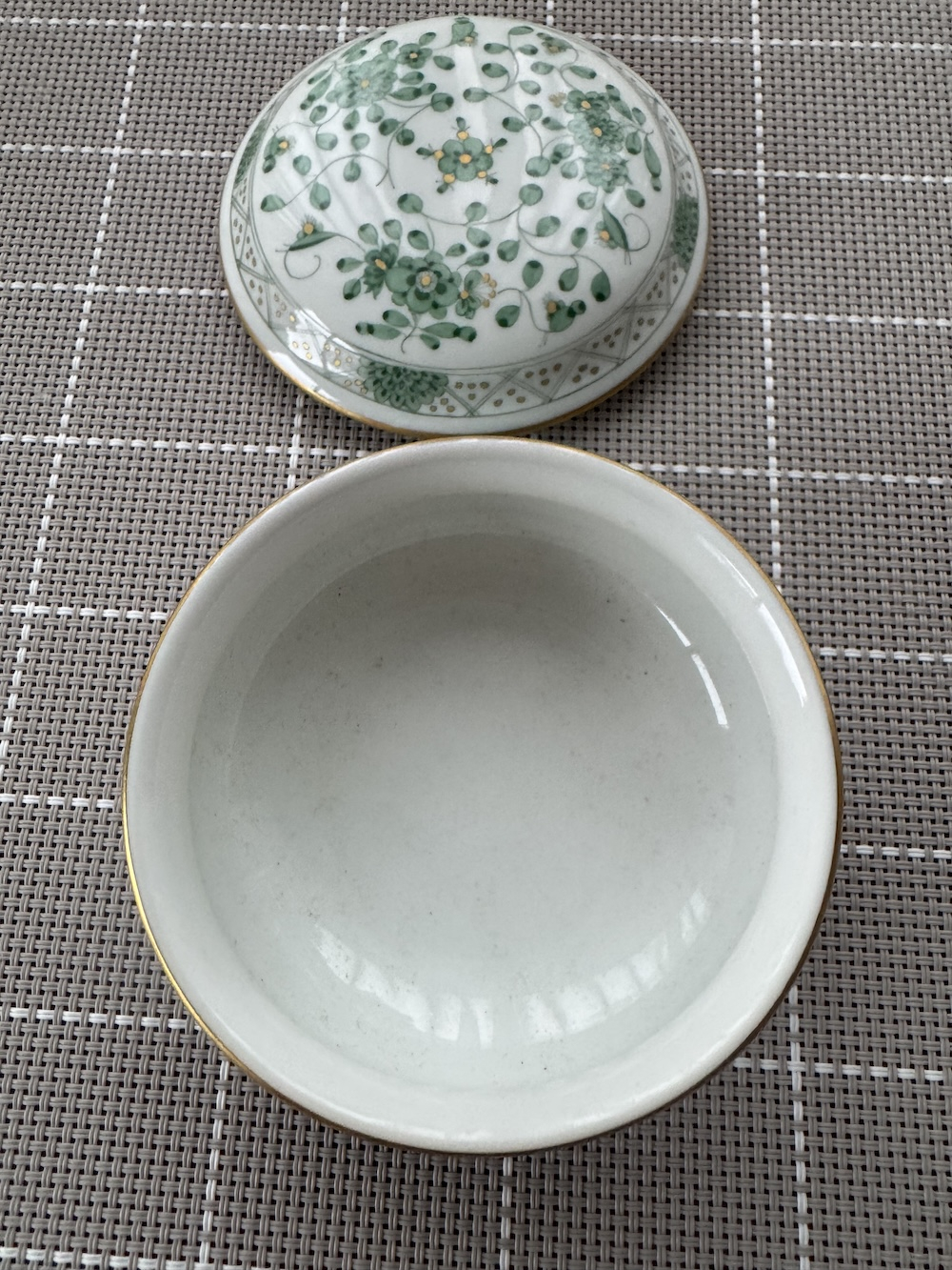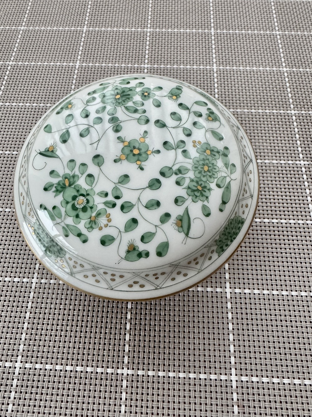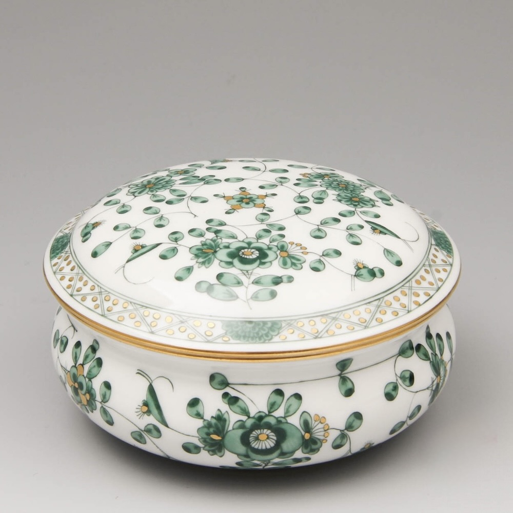 Декор: Узор «Зеленые индийские цветы» (Indian Green) с золотой росписью. Изделие выполнено из высококачественного фарфора. Диаметр: 9,5 см, высота: 6 см. Хорошее состояние.
