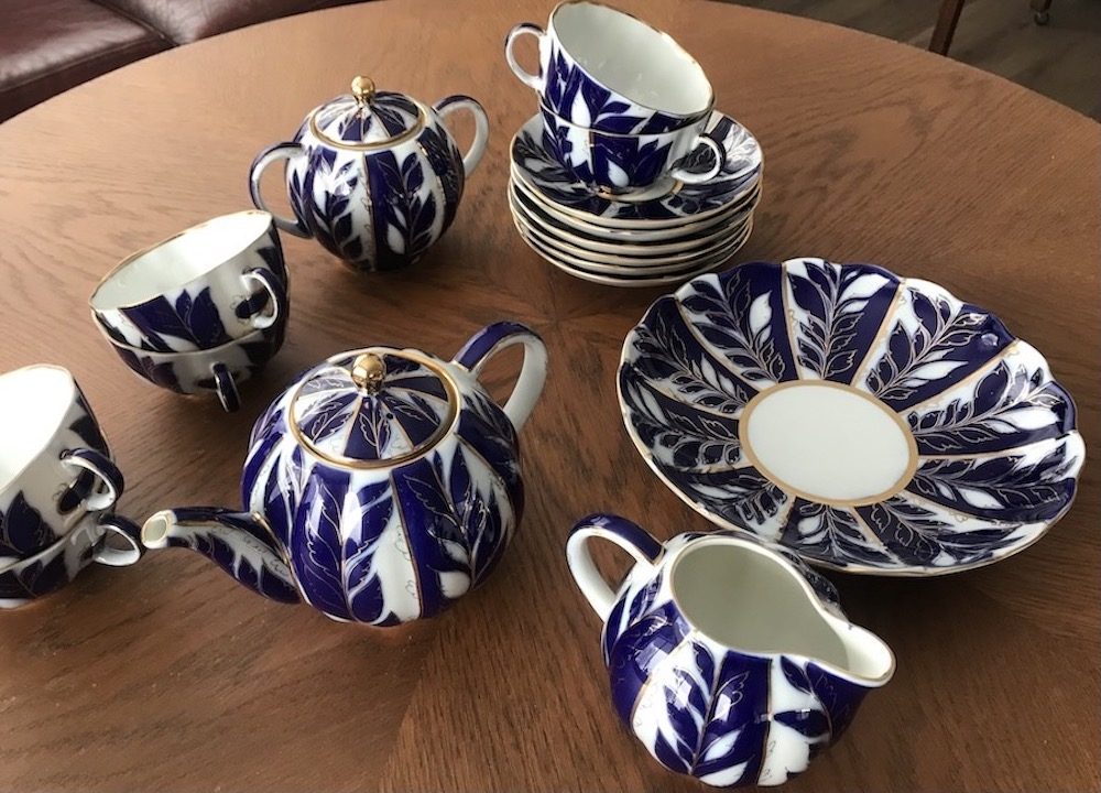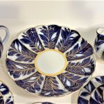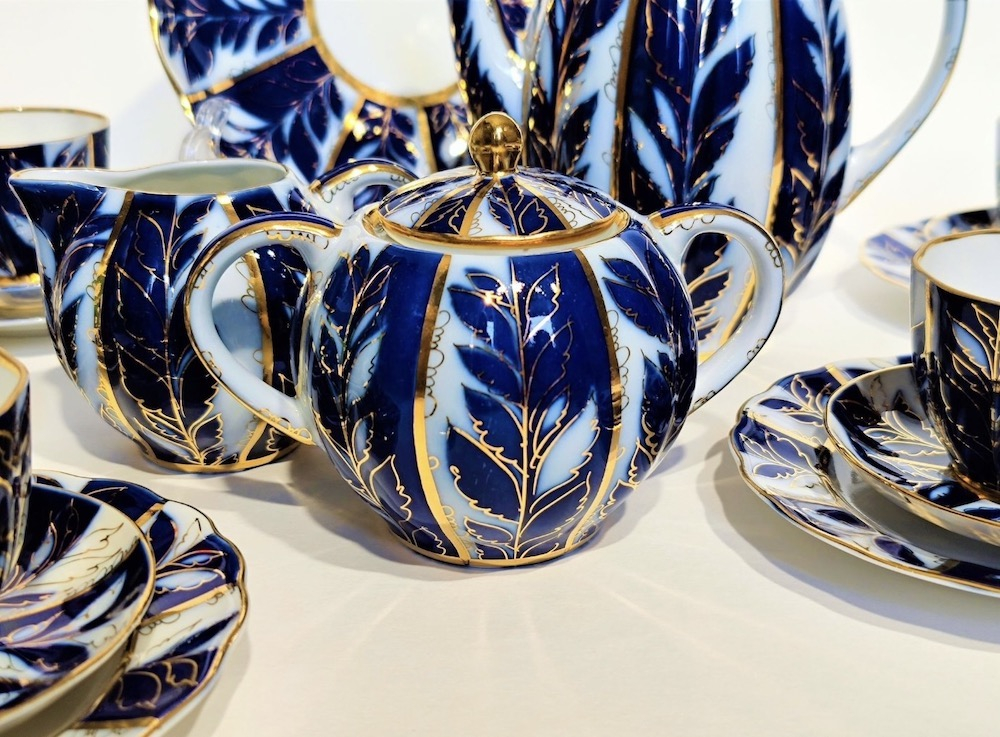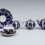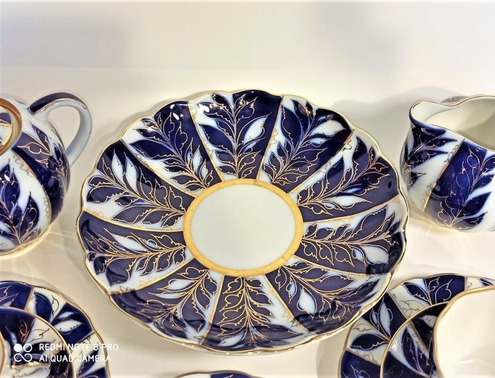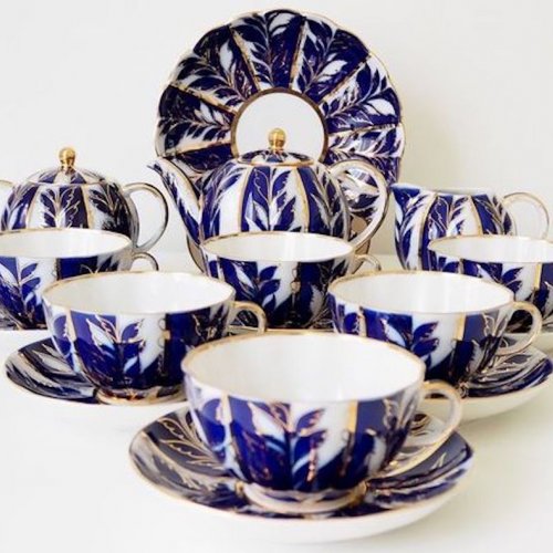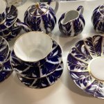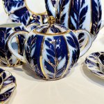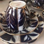 Porcelāna kafijas serviss LFZ (Lomonosova porcelāna fabrika) "Ziemas nakts" (Tulpju ziemas nakts) 6 personām ar kafijas kannu, cukurtrauku, piena krūzi un sausiņu bļodu - tas ir izsmalcināts un elegants kafijas serviss, kas izgatavots no izcilākā cietā porcelāna , dekorēts ar satriecošu dizainu – skaista abstrakta ziemas nakts aina ar daudz zelta detaļām. Ziemas nakts ir lieliski piemērota tiem, kam patīk stilīgi galda piederumi. Krūzes ar tilpumu 250 mm kafijas kanna ar augstumu 13 cm. Made in USSR