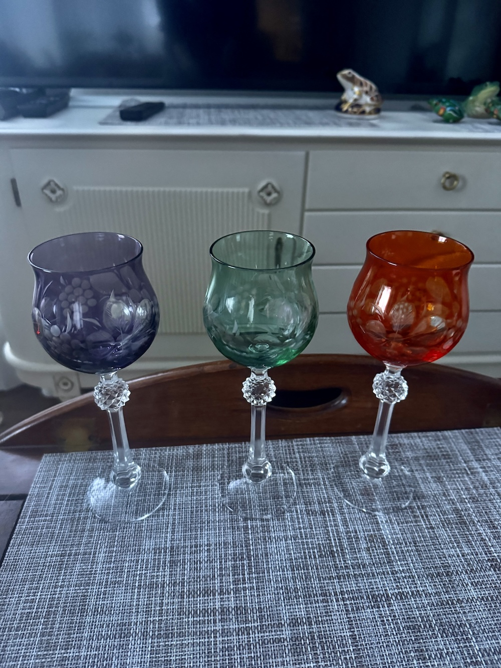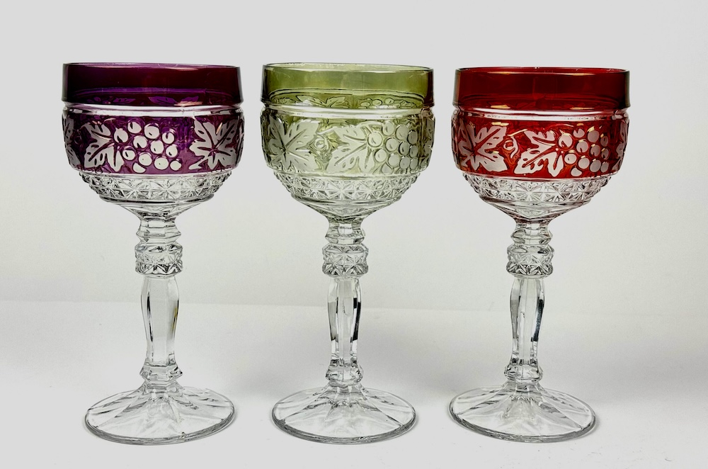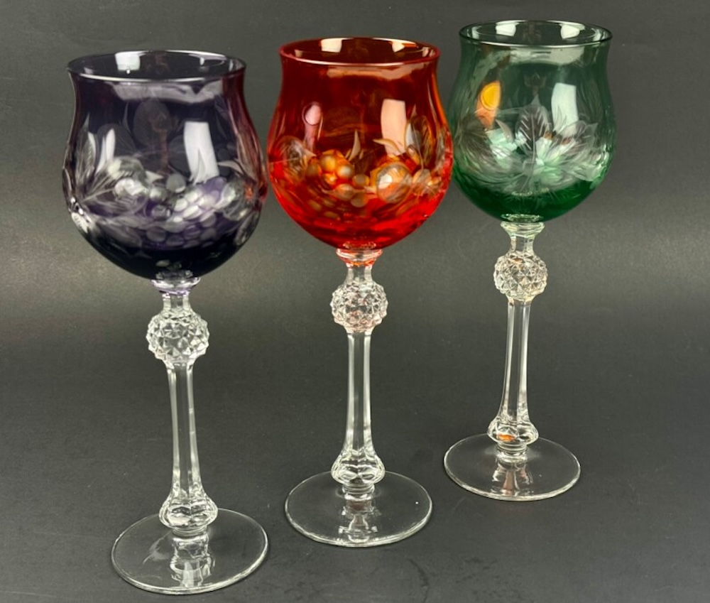 6 krāsainu kristāla glāžu komplekts vīnam un šampanietim, vintage.