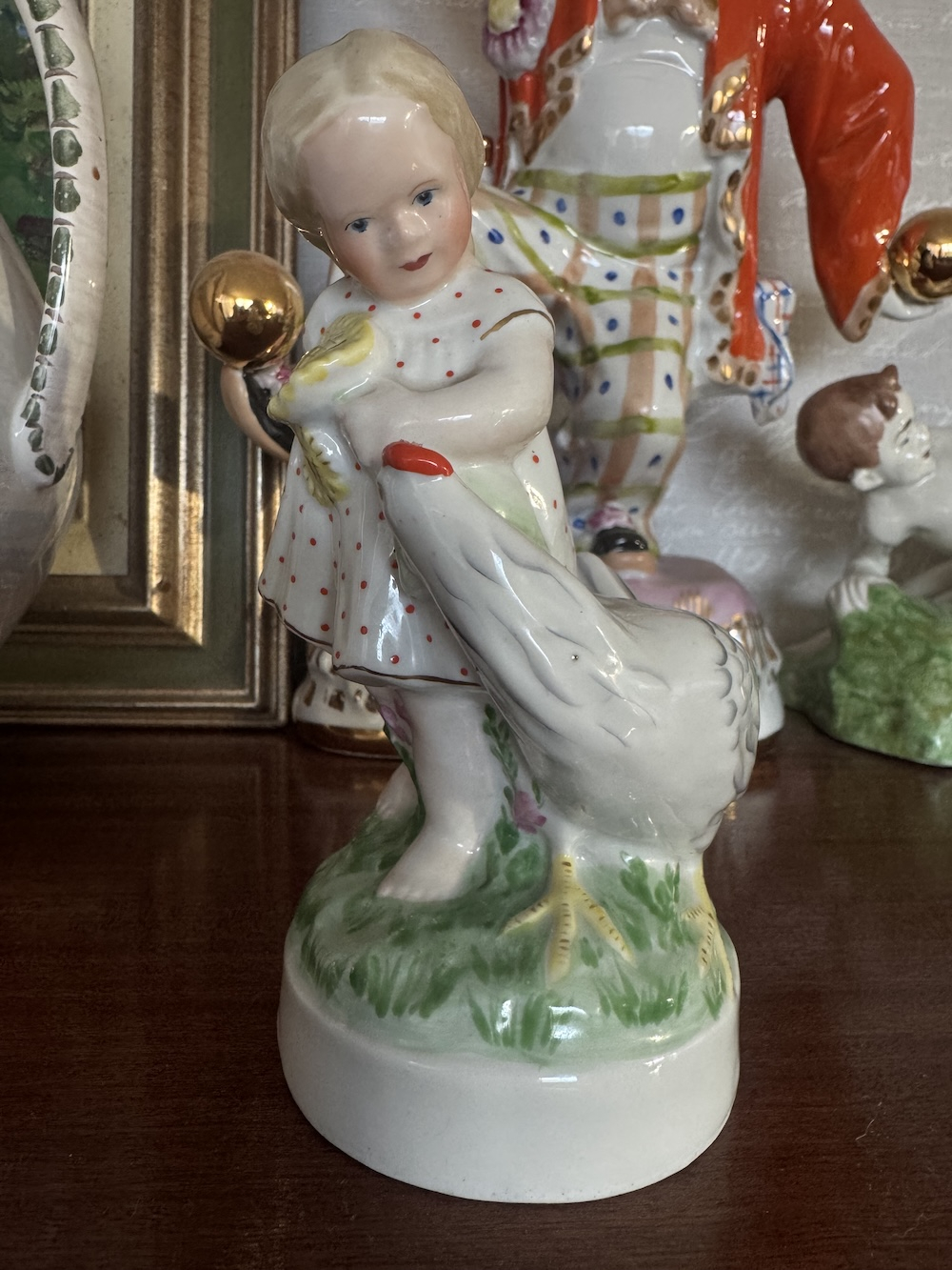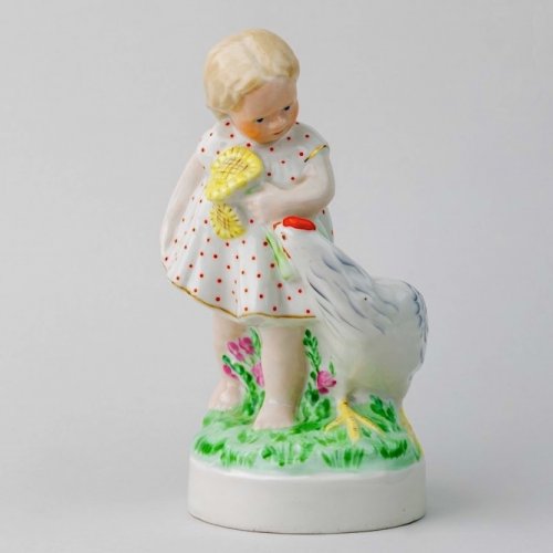 "Meitene ar vistu" (jeb "Saulespuķe") ir reta porcelāna figūriņa, kas tika ražota Rīgas Porcelāna fabrikā 20. gs. piecdesmitajos gados pēc tēlnieces Beatrises Kārkliņas projekta. Figūriņa attēlo meiteni ar vistu, kas simbolizē Latvijas mājas komfortu un lauku dzīvi. Tas ir viens no Kārkliņas raksturīgākajiem darbiem, kas kļuvis par Rīgas porcelāna simbolu un ko kolekcionāri augstu vērtē. Augstums: 15,7 cm, marķējums "1. šķira", bez šķembām, plaisām vai restaurācijām.