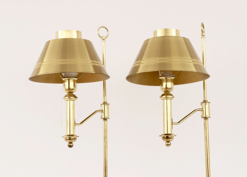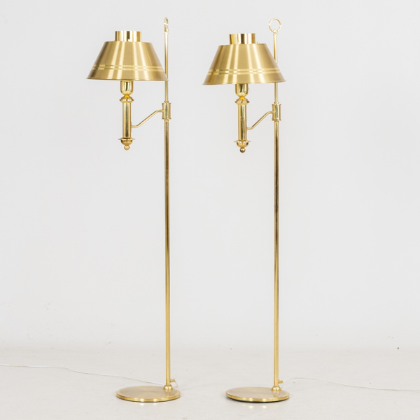 Lielisks misiņa stāvlampu pāris, ražots Zviedrijā 20. gs. sešdesmitajos gados. Šis satriecošais, pārdomātais dizains apvieno eleganci un funkcionalitāti.