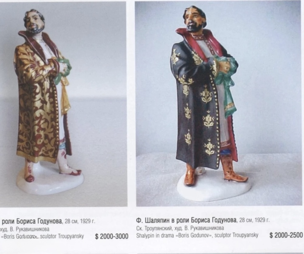 Porcelāna figūriņa, kurā attēlots Fjodors Šalapins Borisa Godunova lomā M. P. Musorgska operā "Boriss Godunovs". Veidni veidojis Jakovs Abramovičs Trupjanskis. Gleznojusi Varvara Fjodorovna Rukavišņikova. Skulptūru mākslinieks sākotnēji veidoja 1922. gadā. Pievienota sarkana eksporta zīmogs "Ražots PSRS". Mākslinieka paraksts mīklā uz figūriņas pamatnes ir: "Trupjanskis" (viltojumiem šī paraksta nav). Augstums: 28 cm