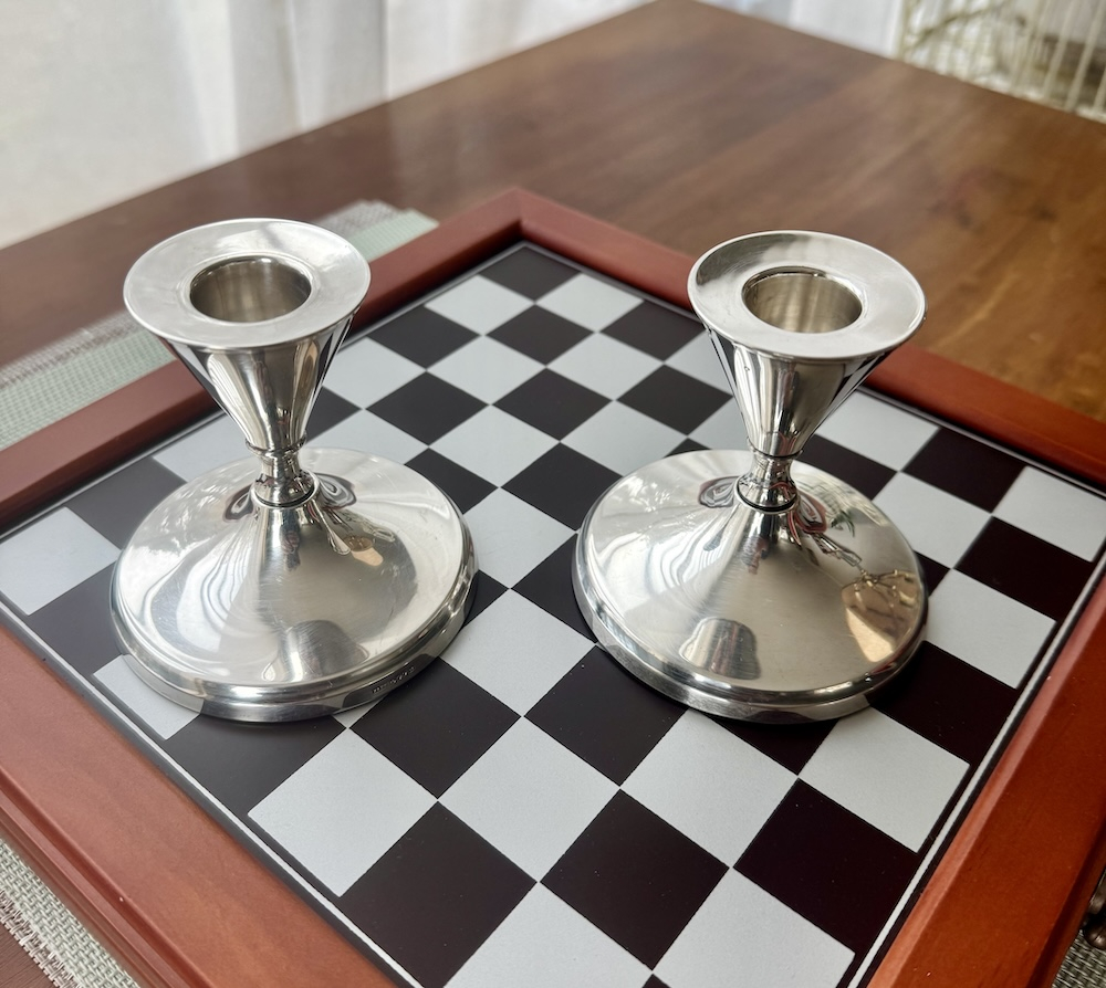 Пара подсвечников, серебро, производитель K&EC (Knut Eriksson & Co), Швеция, 830 проба, клейма серебра на каждом, 1969 год, высота 9 см, вес брутто 308 грамм.