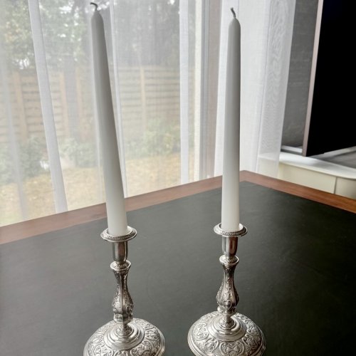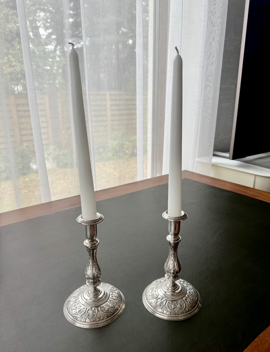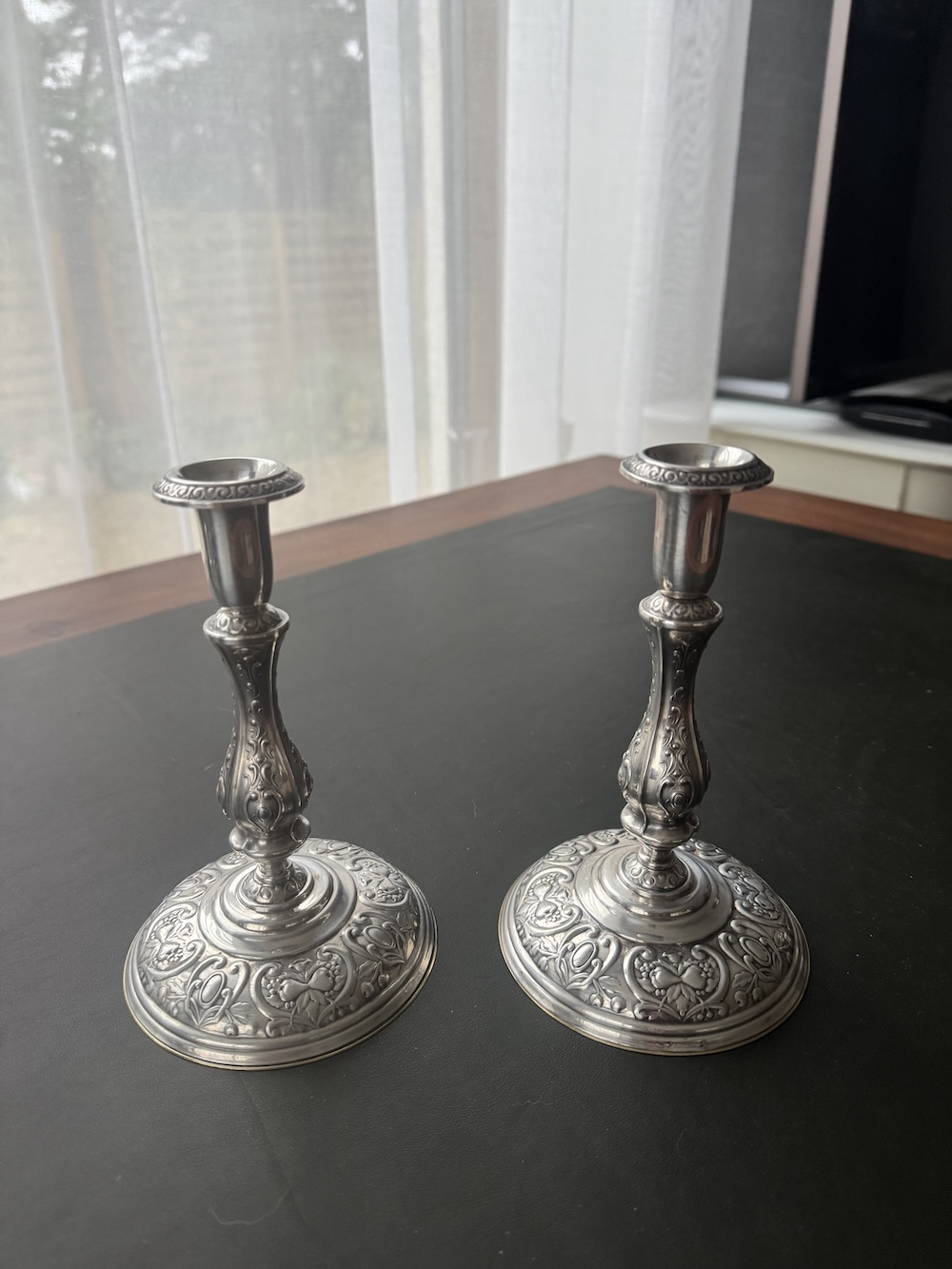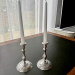 Пара серебряных подсвечника 830 пробы с рельефным изящным декором, финские клейма серебра 1972 года, высота 17,5 см. Общий вес брутто 394 грамм. Украсит праздничный стол, прекрасный подарок .