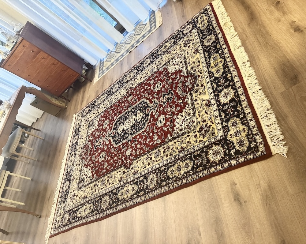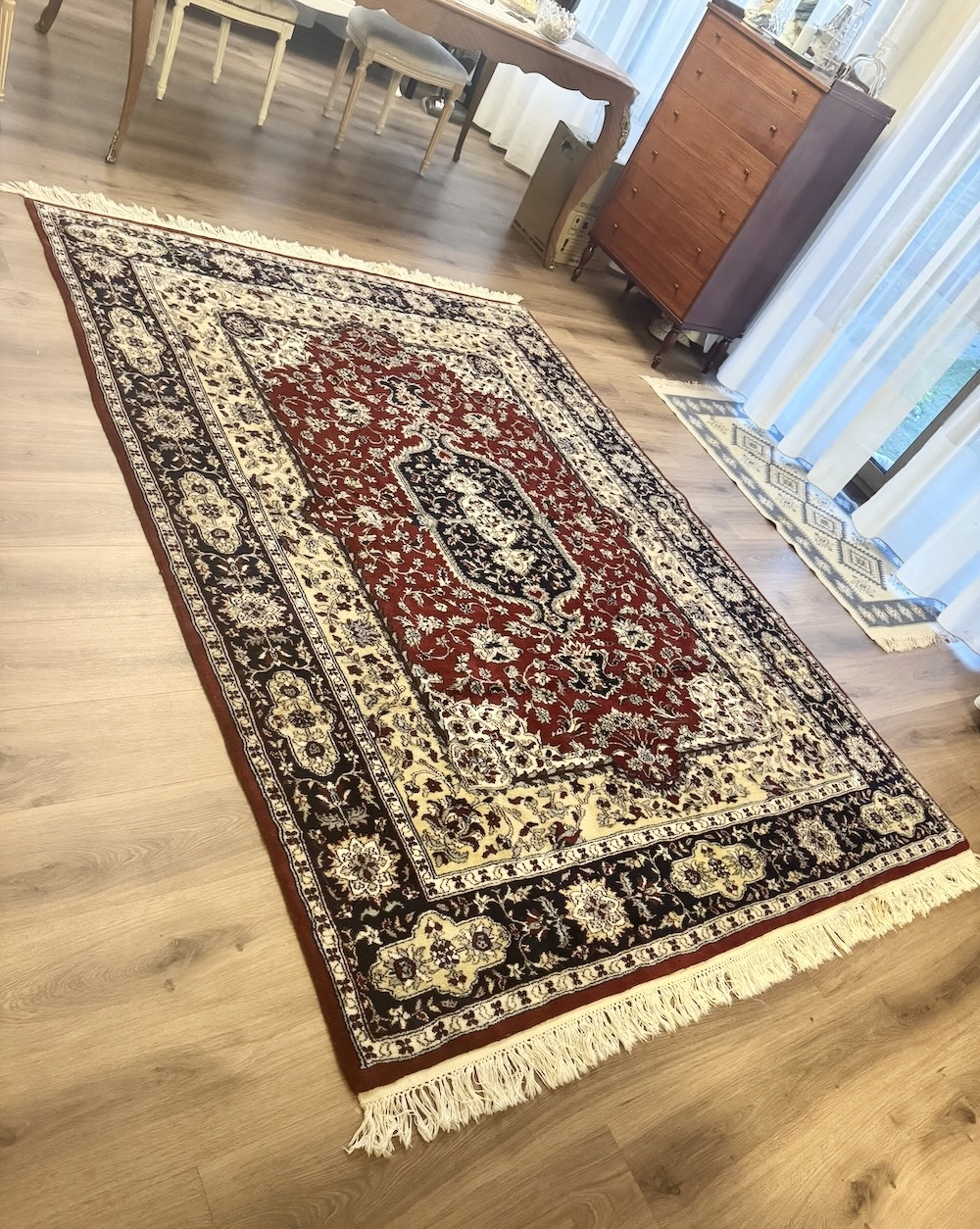 Восточный ковер из шерсти выткан вручную, с хорошим толстым и не вытертым ворсом комнатного размера, 256x188 cm Такие ковры пользуются сейчас особой популярностью, они не только прекрасно вписываются в современный и классический интерьер , но и создают уют, очень комфортны.