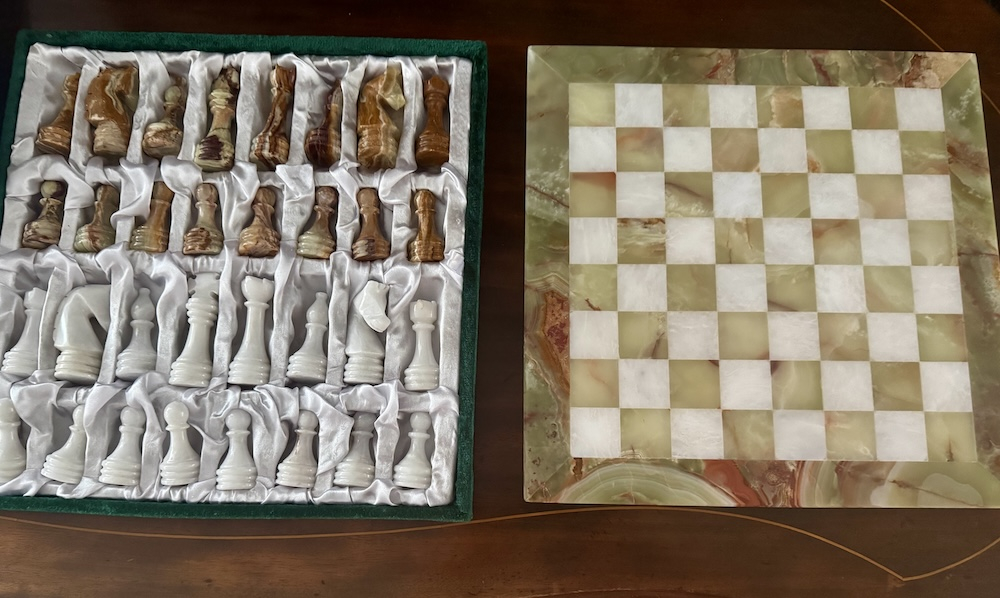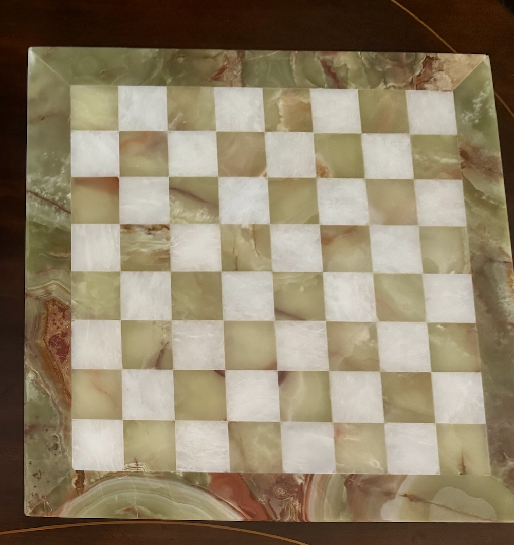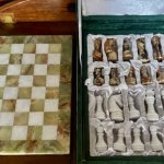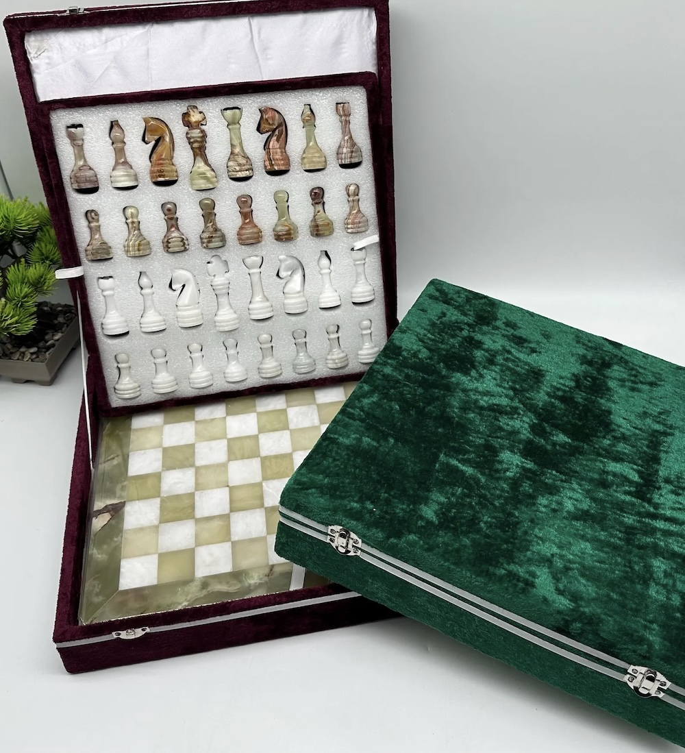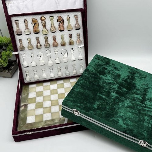 Уникальный Набор шахмат из зеленого и белого оникса с коробкой для хранения, превосходной шахматной доской из оникса и невероятными игровыми фигурами в полном комплекте и прекрасной сохранности. Прекрасно подходит для подарка, украсит интерьер. Каждый комплект шахматных фигур из оникса неповторим
