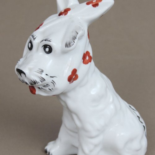Редкая фигурка «Собачка в платочке», фарфор, Рига (Латвия), СССР, Таисия Полуикявича, (1937–2002), авторская работа 70-80-е годы XX века, 17,4 см. Хорошее состояние
