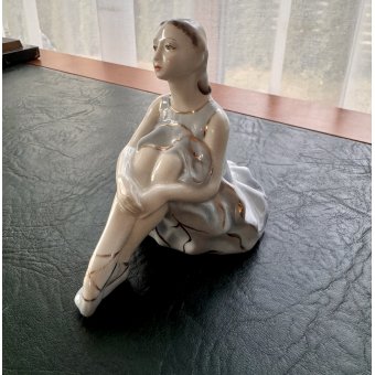 скульптор Воробьев Б. Я., художника Лупанова Е. Н., ЛФЗ, 1950-60 годы, фарфор, надглазурная полихромная роспись, позолота, высота 13,7 см.